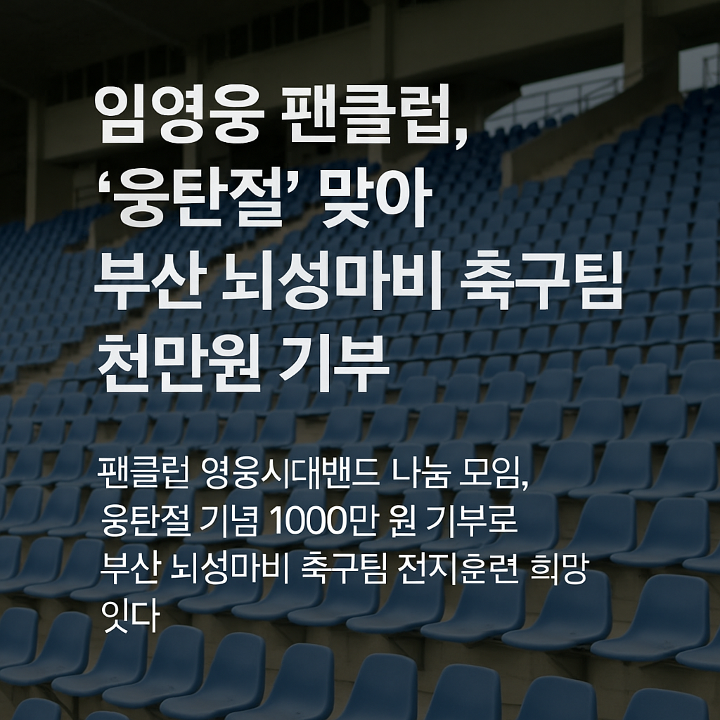 팬과 가수가 함께 만든 기적. 2025년 6월 16일 ‘웅탄절’을 맞아, 임영웅 팬클럽 ‘영웅시대밴드 나눔 모임’이 1천만 원을 기부하며 부산 뇌성마비 축구팀에 새로운 희망을 전했습니다.