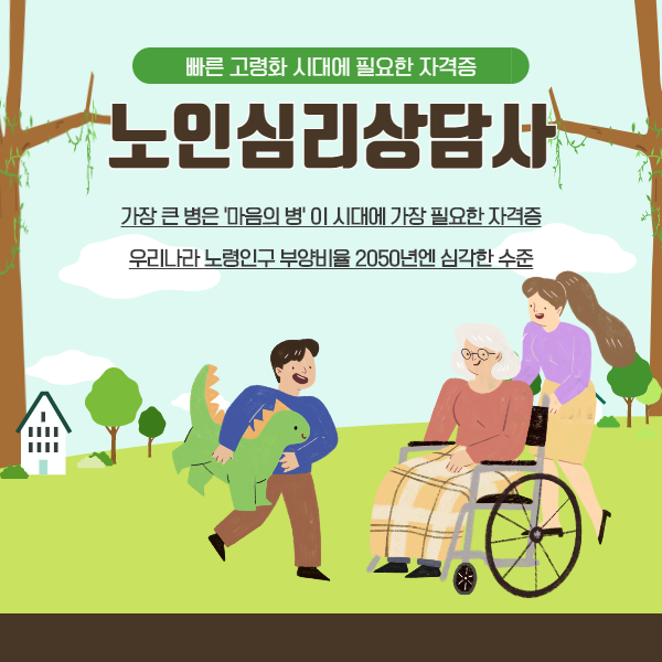 100세시대 인기좋은 유망 자격증 노인심리상담사!!